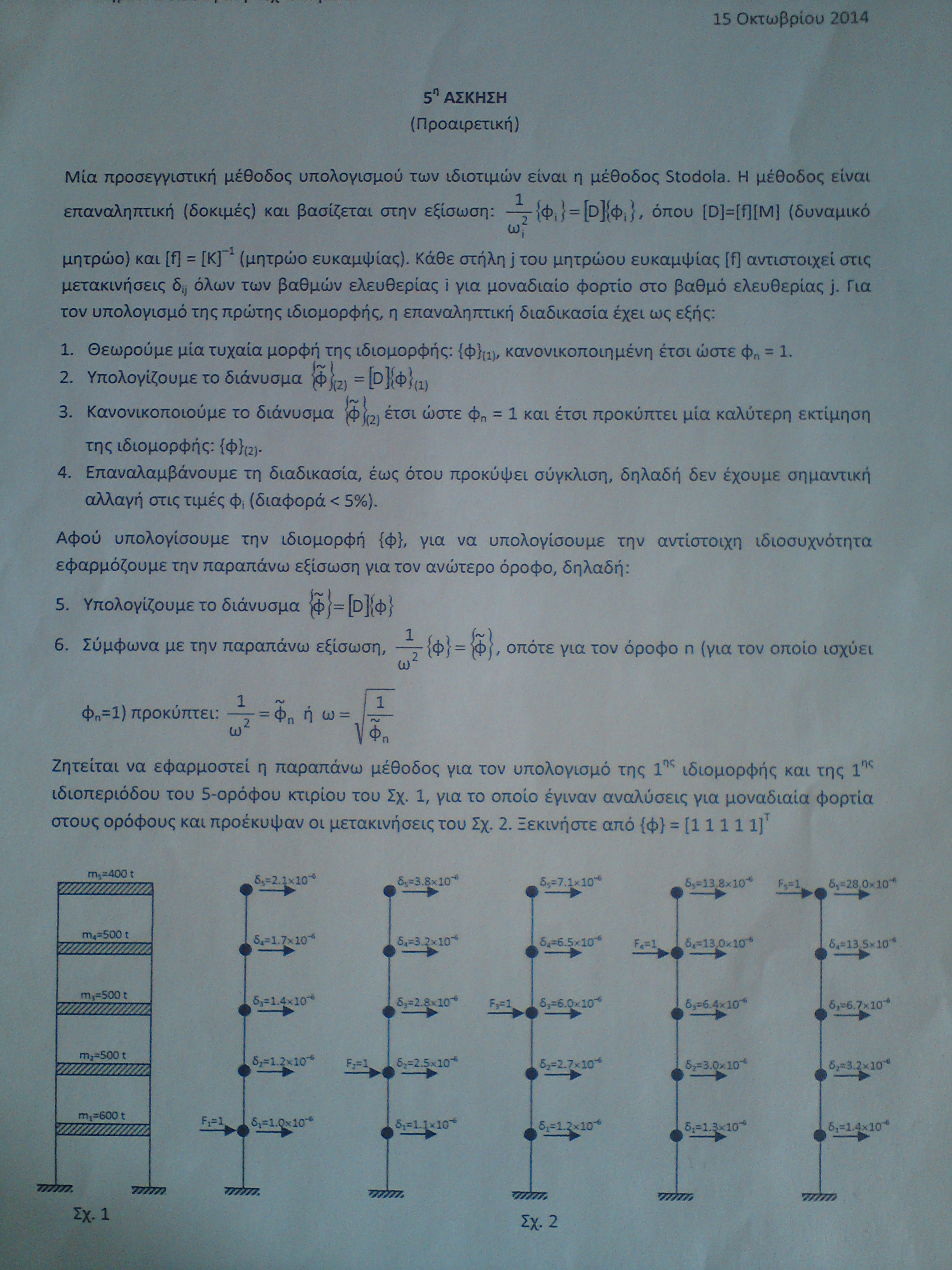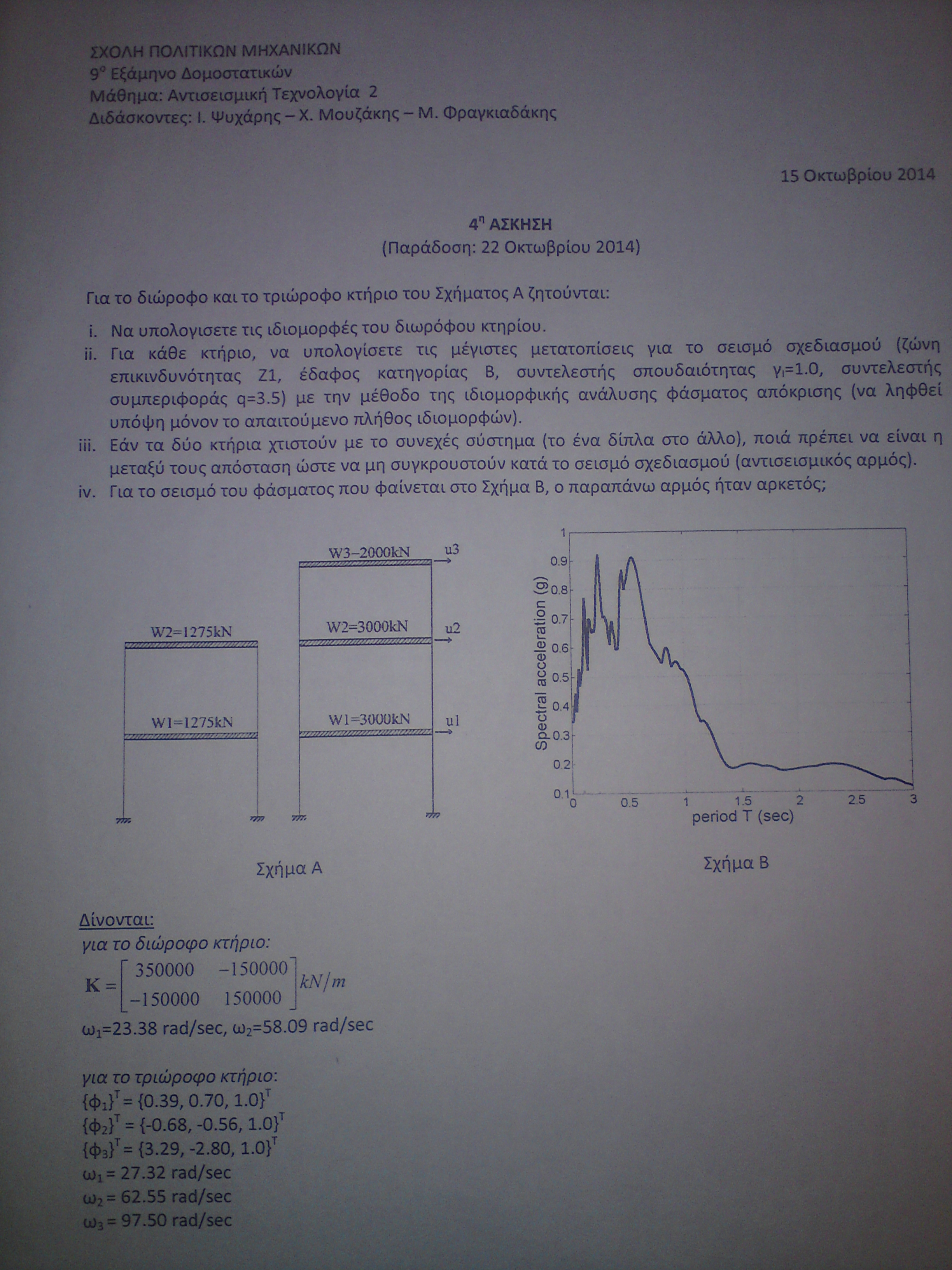 Κοκός έγραψε:Στην άσκηση 4 ερώτημα 3,αφού βρούμε τις μέγιστες μετακινήσεις και των 2 κτιρίων θα εφαρμόσουμε πάλι Κανόνα SRSS για τις στάθμες 1 και 2;...