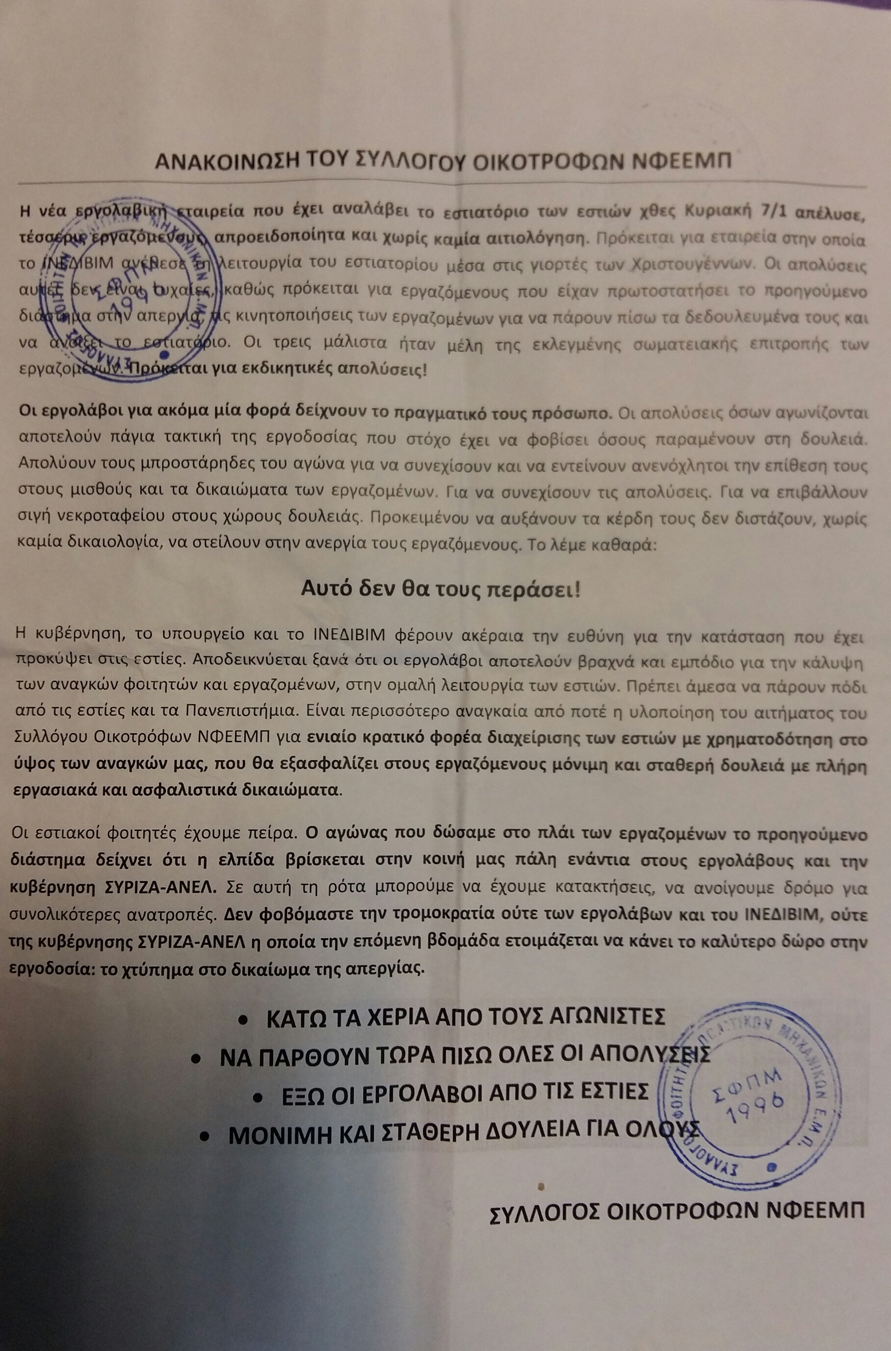 Re: Αποφάσεις ΔΣ του Φοιτητικού Συλλόγου