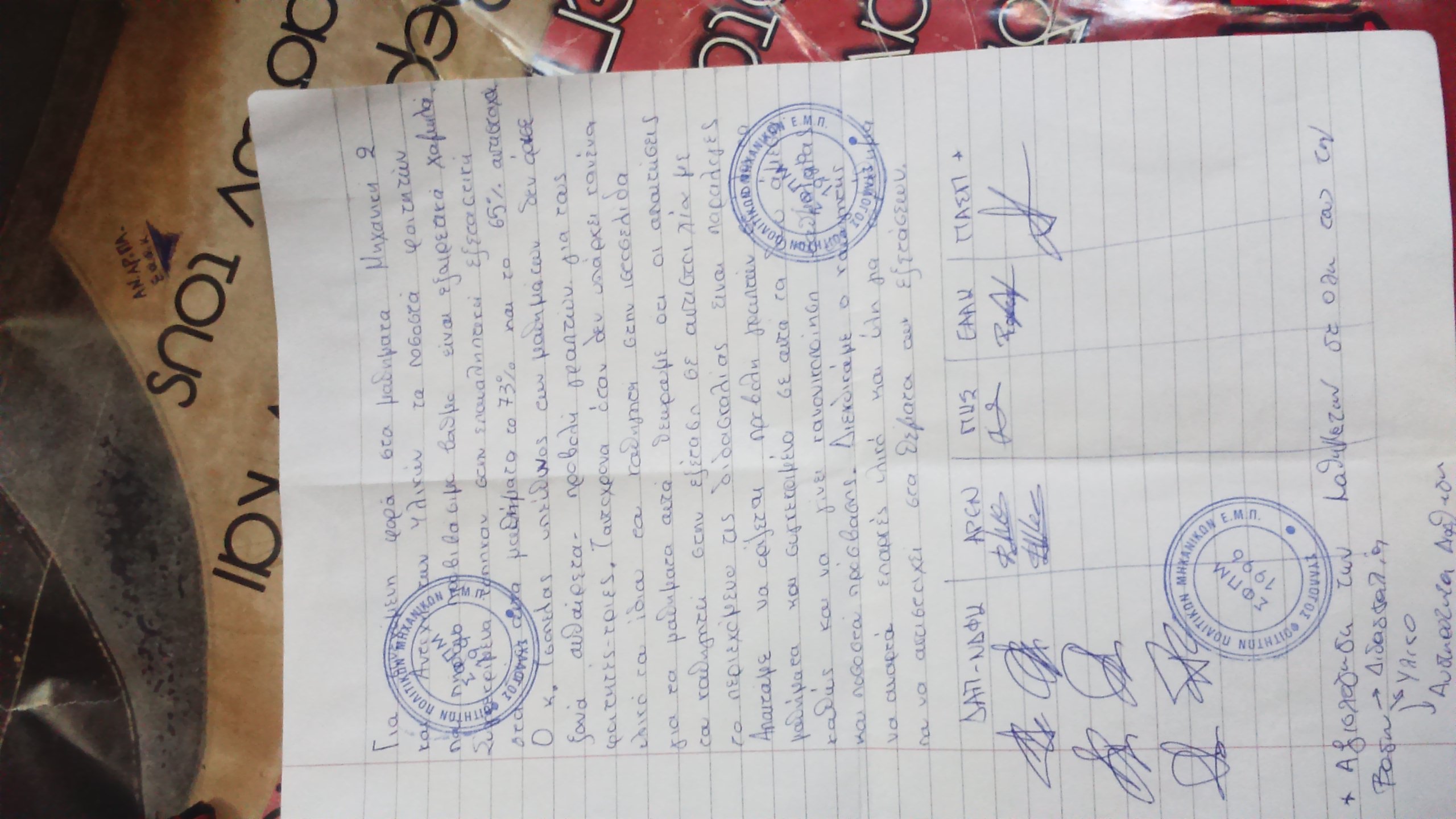 Επίσης να τεθεί στο αυριανο τμήμα καθηγητών και η αποφαση του Δ.Σ. για τα μαθήματα μηχανική 2 και αντοχή υλικών και τα ποσοστά αποτυχίας σε αυτά. Διεκδικουμε ανάρτηση υλικού και παλαιών θεμάτων κ λύσεων στο mycourses, αντιστοιχία θεμάτων κ υλικού διδασκαλίας,κανονικοποιηση του ποσοστού επιτυχίας κόντρα στα ακραία κοψιματα των φοιτητών- τριών από τους καθηγητές σε αυτά τα μαθήματα καθώς και τις αυθαίρετες απαιτήσεις τους αναντιστοιχες με τον τρόπο διδασκαλίας τους.