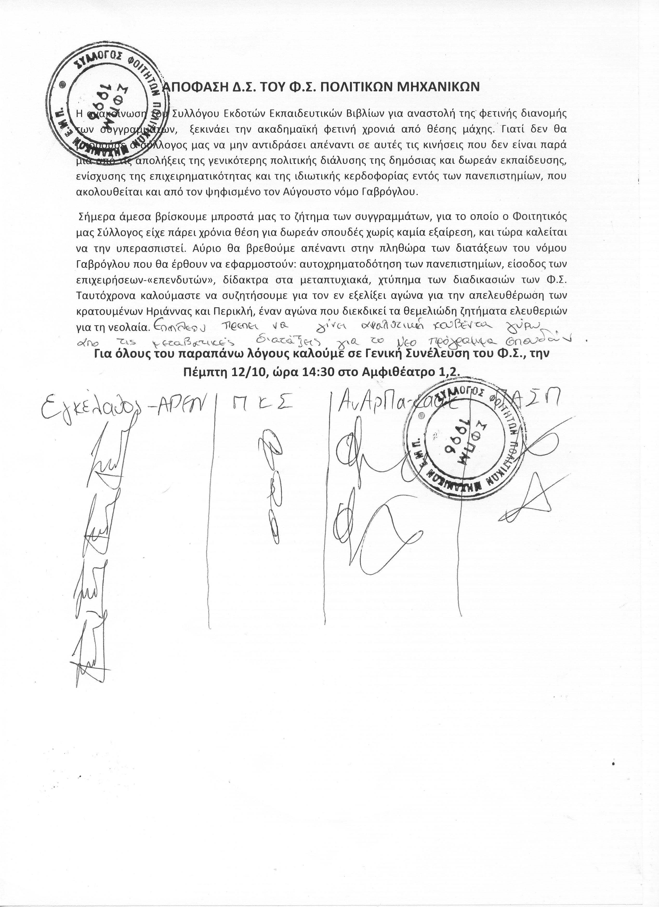 Re: Αποφάσεις ΔΣ του Φοιτητικού Συλλόγου
