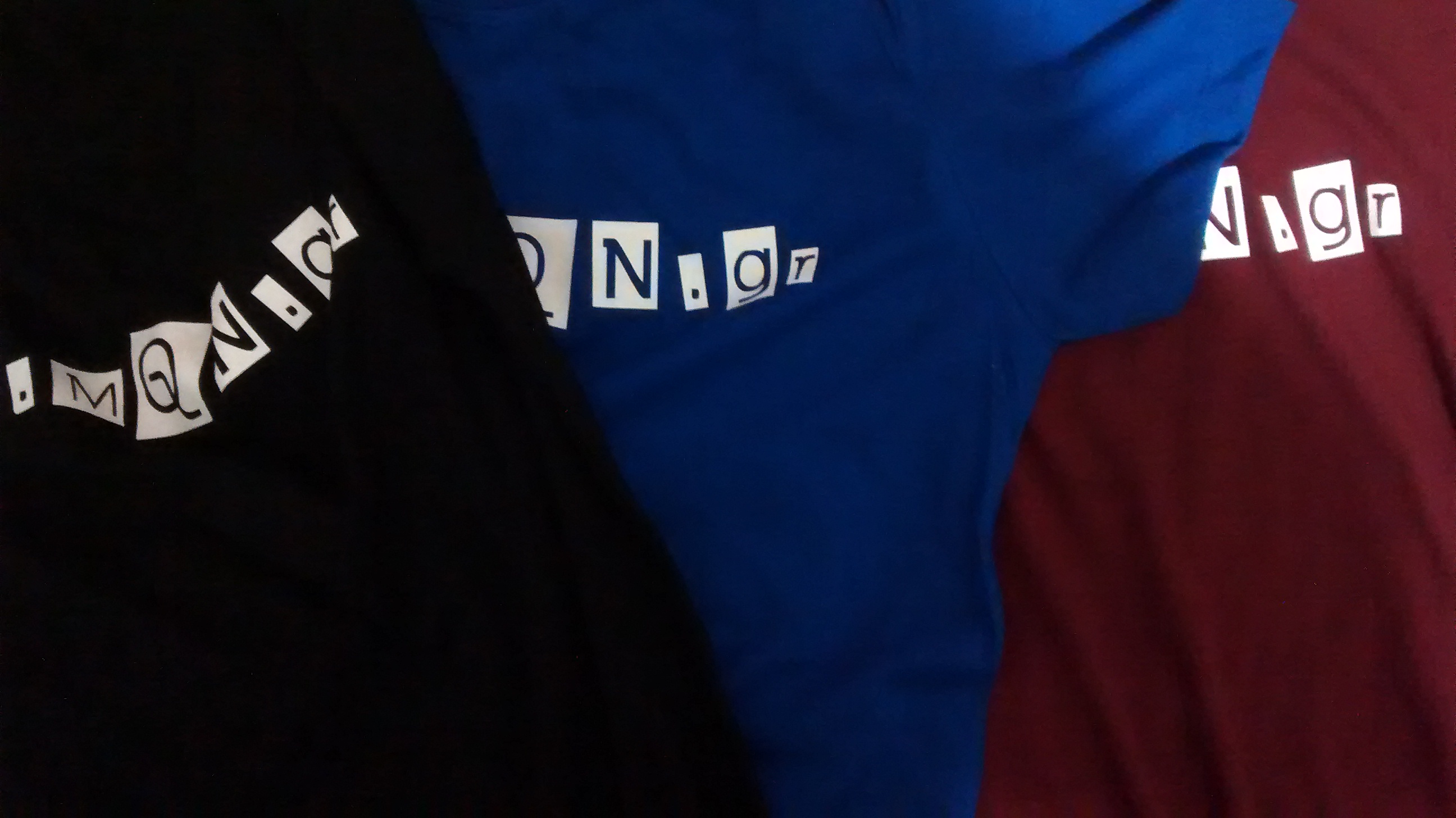 Τα διαθέσιμα χρώματα είναι αυτά τα 3 κι η τιμή στα 7€. Τα νούμερα είναι από XS (extra small) έως XXL κι η γραμμή, ας πούμε unisex! Η επικοινωνία μπορεί να γίνει με μήνυμα εδώ ή στο fb του MQN και τα χρήματα από κοντά στη σχολή!