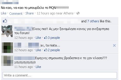 Μέσα στον οχετό των post οποιοδήποτε post κριθεί ακατάλληλο διαγράφεται και ο χρήστης αποκλείεται προσωρινά από τις συζητήσεις.