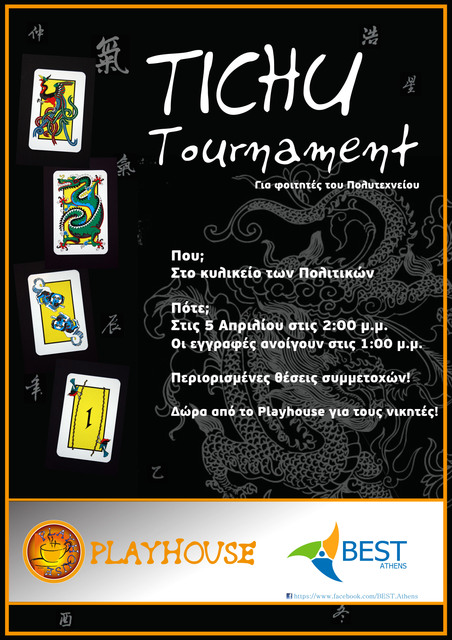 Αν είσαι φοιτητής Πολυτεχνείου και σου αρέσει το Tichu, έλα με τον παρτενέρ σου την Πέμπτη, 5 Απριλίου, στις 14.00, στο κυλικείο των Πολιτικών Μηχανικών για να διεκδικήσετε δώρα από το Playhouse! :D :D