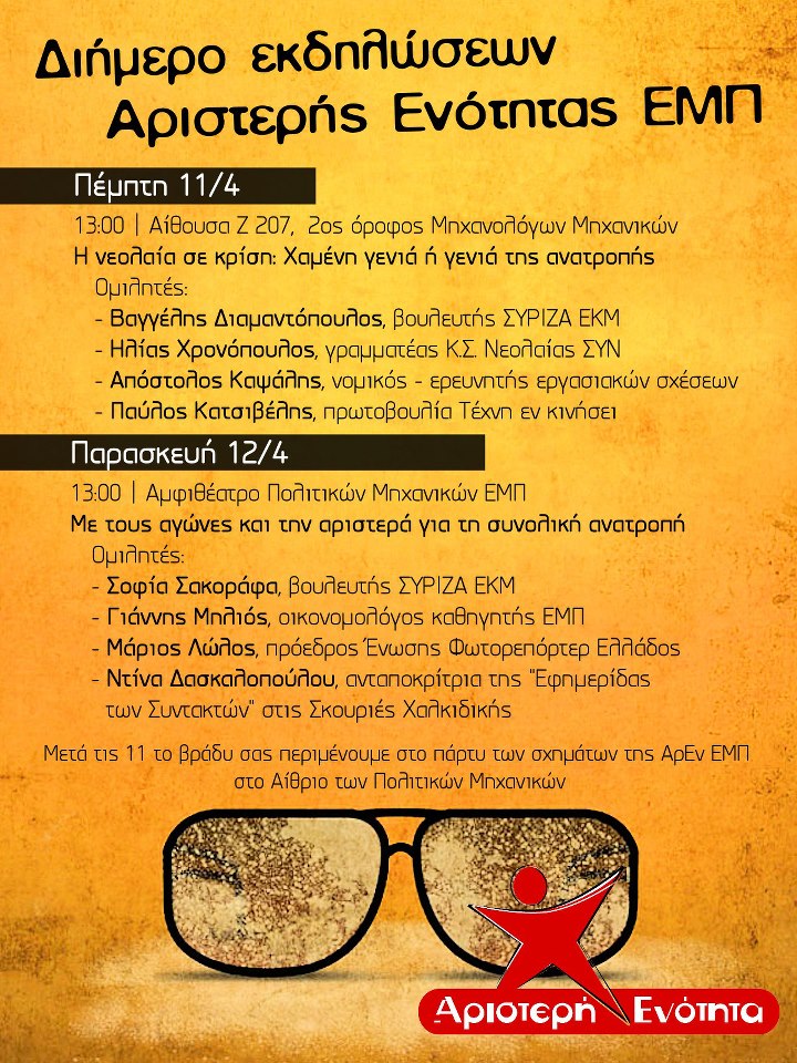 Re: 11 & 12/4: Πολιτικό-Πολιτστικό Διήμερο ΑΡ.ΕΝ. ΕΜΠ