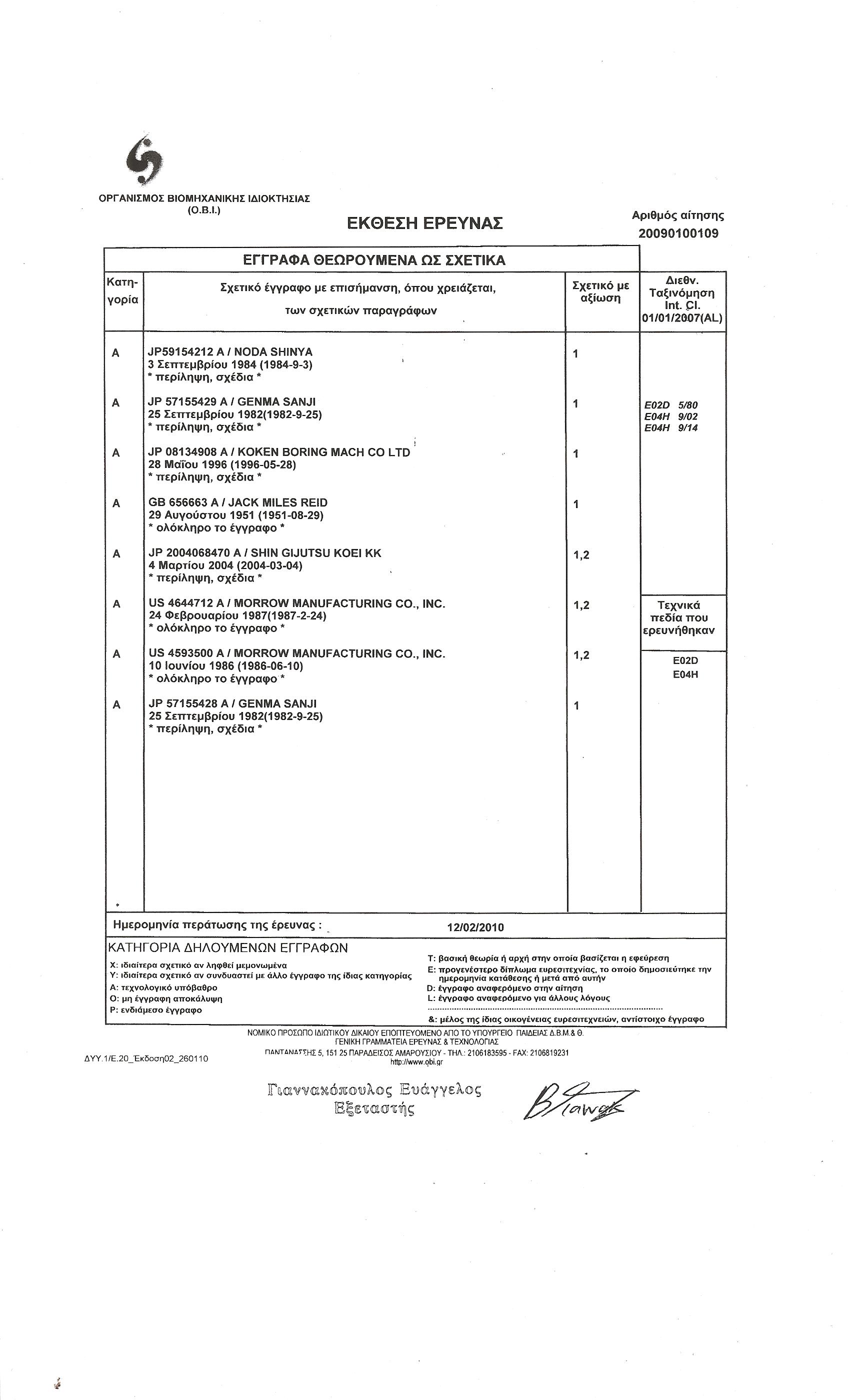 Φίλοι μου. Η ευρεσιτεχνία πέρασε την έκθεση έρευνας στην Ελλάδα,(μετά από έρευνα σε όλο τον κόσμο) με το γράμμα ( Α )