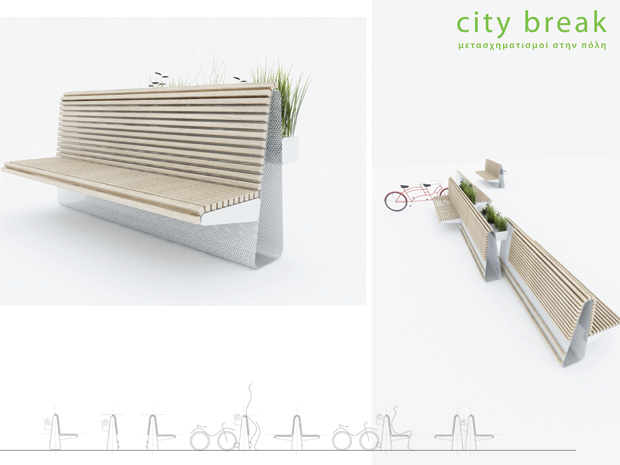 Βλέποντας και μόνο από το design, εικάζω ότι στην πίσω του πλευρά έχει θέσεις για να κλειδώνονται-παρκάρουν ποδήλατα. Ευρηματικό, δε λέω, συνδυάζει δύο σε ένα (τον άνθρωπο και το ποδήλατο), σε μία πόλη βέβαια που δεν συνδυάζει κανένα από τα δύο.