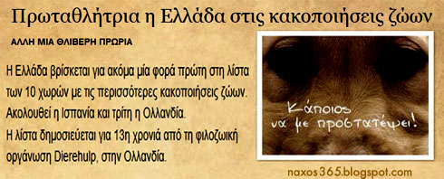 Για άλλη μια φορά η Ρωμιοσύνη έκανε το θαύμα της. Για άλλη μια φορά η Ρωμιοσύνη κατέκτησε επάξια με το σπαθί της (και με τη φόλα της) μια θλιβερή πρωτιά. Σύμφωνα λοιπόν με τη φιλοζωική οργάνωση Dierehulp, το κρατίδιο τής Ρωμιοσύνης ανακηρύχτηκε πρωταθλητής στις κακοποιήσεις ζώων, πρωταθλητής μεταξύ δέκα χωρών, όπου καταγράφονται οι περισσότεροι βασανισμοί ζώων. Τυχαίο; Δε νομίζω...