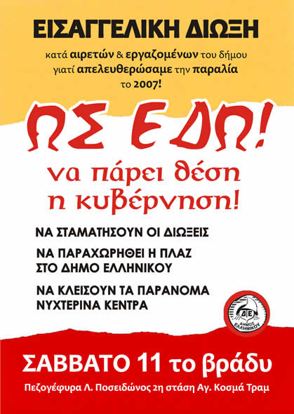 Re: Συγκέντρωση συμπαράστασης στον αγώνα του Δήμου Ελληνικού