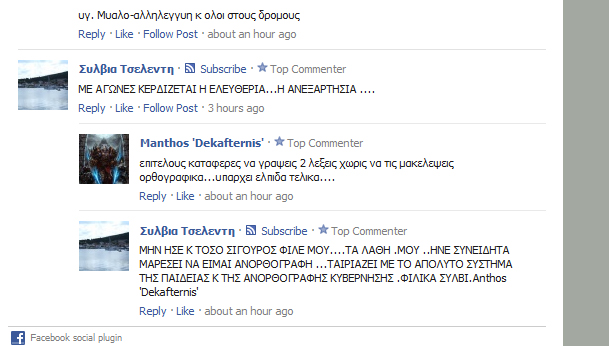 Συλβια τσελεντη! Η μεγαλύτερη μορφή του ελληνισμού, μετά το Ζορμπά και το Γιώργο Παπανδρέου (συγγνώμη Ζορμπά :ellinofreneia: ). Το πιο επικό troll του tvxs, παραγωγικότατο, σκάει τις τρολιές σε ανύποπτο χρόνο, αλλά και συνεπέστατη, δεν υπάρχει είδηση που να μην έχει σχολιαστεί. Η ορθογραφία και η άριστη σύνταξη είναι απλά το κερασάκι στην τούρτα.