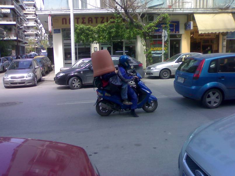 πώς μεταφέρουμε μία μεγάλη γλάστρα με ένα σκουτεράκι?... (και 2 αναβάτες)