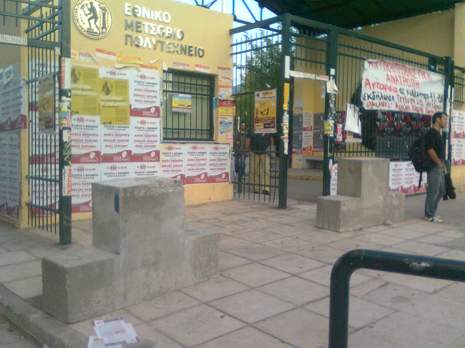 Τα νέα αντιαρματικά μπλοκ σκυροδέματος έρχονται να μπλοκάρουν την είσοδο αρμάτων/ερπυστριοφόρων από την πύλη Ζωγράφου (Ηρώων Πολυτεχνείου) που μετά βίας κινούνται αυτοκίνητα στο δήμο Ζωγράφου.
