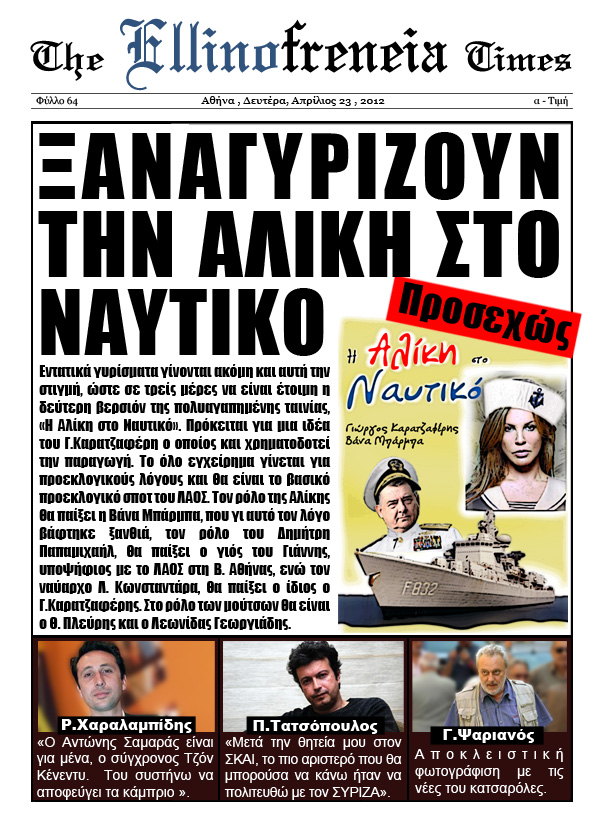 +1dimos έγραψε:H παραπάνω φωτογραφία δεν προσφέρει τίποτα περισσότερο από το να βγάλει μια κατινίστικη διάθεση (σόρρυ 3, κατά τα άλλα το ξέρεις ότι σε εκτιμώ). Εκτός και αν αρχίσουμε να φακελώνουμε τον καθένα εδώ μέσα και να πάρουμε σβάρνα τις προεκλογικές συγκεντρώσεις για να δούμε ποιος πάει πού.