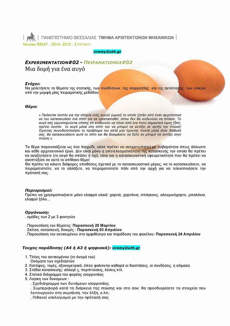 Εργασία στο πρώτο έτος αρχιτεκτονικής βόλου στο μάθημα της στατικής