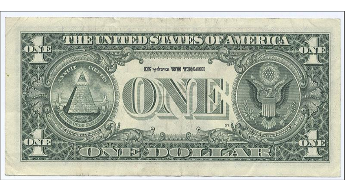 5) Κυκλοφορία συλλεκτικών χαρτονομισμάτων για όλες τις εγχρήματες ενδοπολυτεχνειακές συναλλαγές. Μάλιστα λόγω της τρέχουσας νομισματικής αποσταθεροποίησης επιλέχθηκε αντί του ευρώ ως επετειακό τραπεζογραμμάτιο το δολλάριο. Μέχρι να έρθουν στα χέρια σας τα γαντdollars, το MQN.gr εξασφάλισε σε αποκλειστικότητα το πρώτο χαρτονόμισμα που έχει ήδη τυπωθεί στο εθνικό νομισματοκοπείο. Θα παρατηρήσετε βέβαια τη θε(α)ματική αντικατάσταση του γνωστού "in god we trust". (click to enlarge)