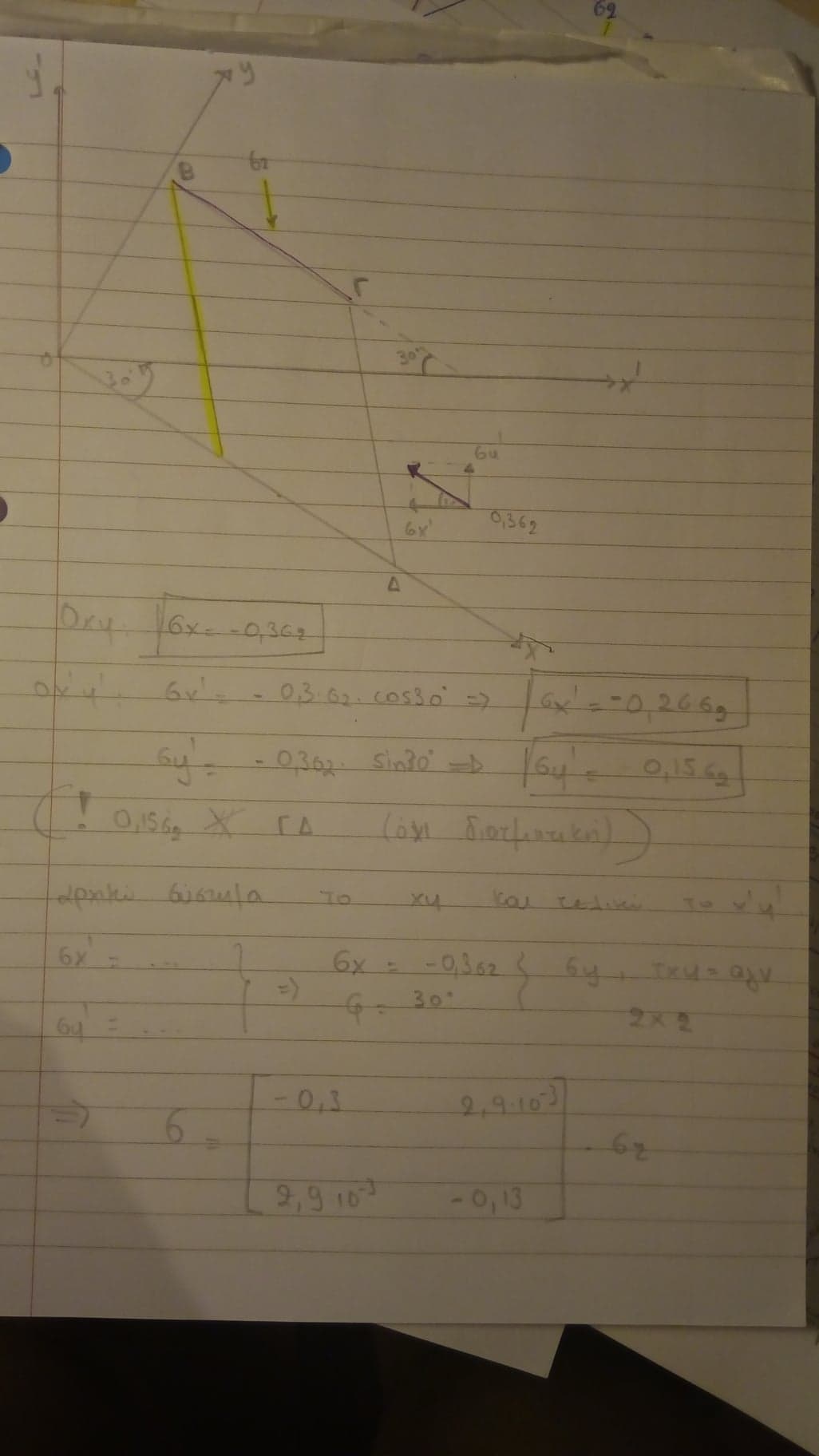 Να ρωτήσω και κάτι ακόμα.. Στην άσκηση 1 των ίδιων θεμάτων τα δεδομένα που μας δίνει ουσιαστικά είναι σχχ=-σ1, σy'y'=-σ2 και σχy=0?