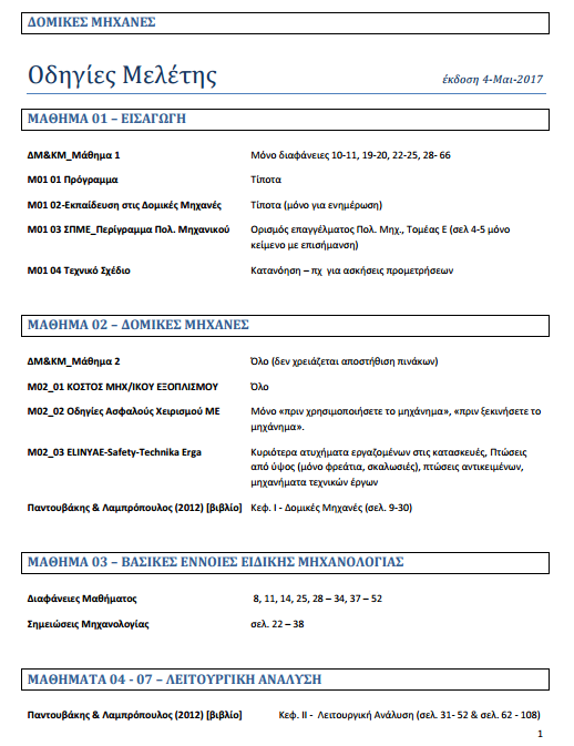 έχουν ανέβει στο mycourses Οδηγίες Μελέτης, ίσως σε αυτες βρεις αυτο που ψαχνεις