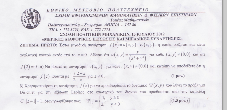 Re: Mερικές Διαφορικές Εξισώσεις και Μιγαδικές Συναρτήσεις (2014-15)