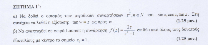 3)Στο tanw=z πως λυνουμε ως προς w?Kανω την αντικατασταση tanw=sinw/cosw με sinz=exp(iz)-exp(-iz)/2i και cosz=exp(iz)+exp(-iz)/2 αλλα δεν καταληγει πουθενα και εχει τεραστιες πραξεις.