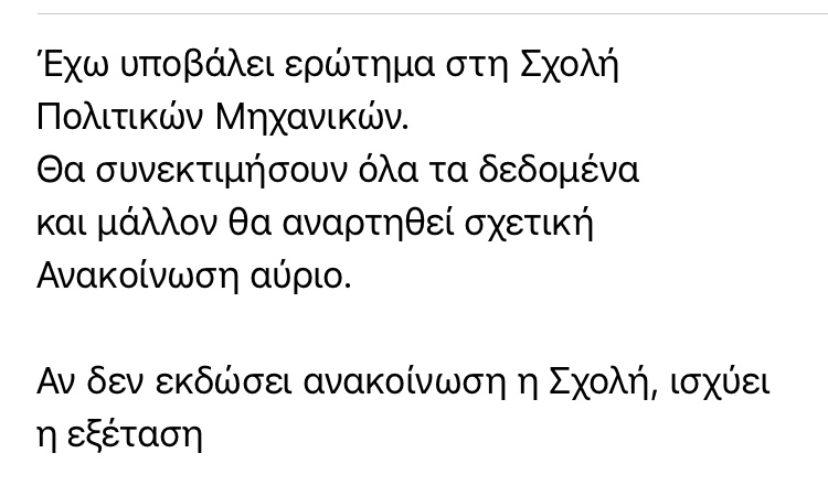 elokarta έγραψε:Άρα ισχύει η εξέταση και αν ρε ε να βρούμε τρόπο να έρθουμε?
