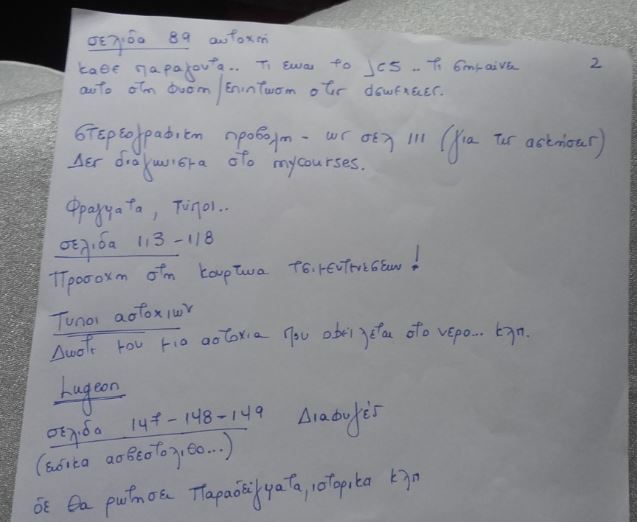 Εγώ αυτά σημείωσα από το τελευταίο μάθημα.