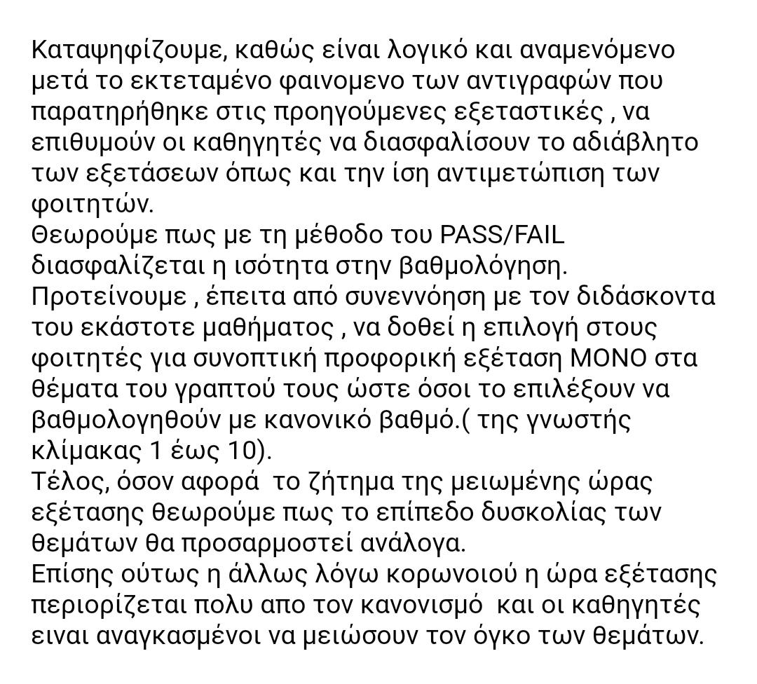 Η μόνη λογική εξήγηση για την σουρεάλ απάντηση της Δαπ σε ψήφισμα που αφορά το να βαθμολογούμαστε κανονικά και όχι με pass/fail στα μαθήματα, είναι πως οι συνάδελφοι δεν έχουν δώσει ούτε ένα μάθημα τον τελευταίο χρόνο. Όσο γελοία και να φαίνεται όμως αυτή η απάντηση, δυστυχώς λόγω της αυτοδυναμίας της Δαπ, μας επηρεάζει όλες/ους...