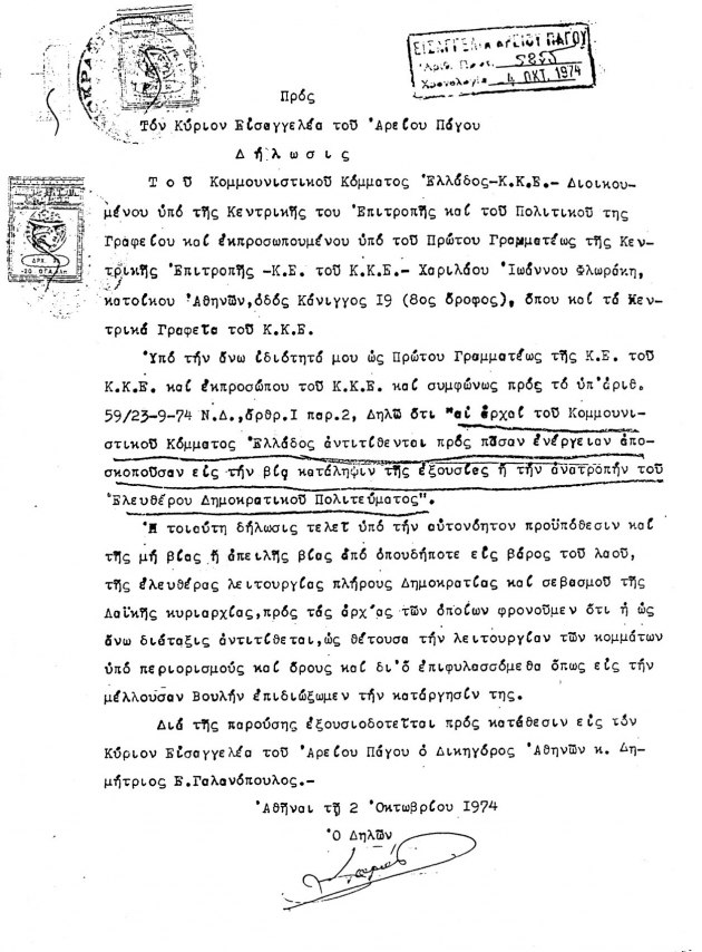 Ναι, ξέρω...Στο κκε δεν επιτρέπεται ο παραμικρός ελιγμός ή το παραμικρό λάθος (γενικότερα). Ακόμα και αν αυτός ο ελιγμός είναι η προϋπόθεση της συμμετοχής στις πρώτες εκλογές μετά από χούντα...Τι κι αν παρακάτω στη μη υπογραμμισμένη παράγραφο καταφέρεται ενάντια σ αυτή τη διάταξη που περιορίζει την ελεύθερη λειτουργία των κομμάτων και δεσμεύεται να παλέψει για την κατάργησή της...Αντι-κκε προπαγάνδα uber alles! Και παράλληλα στηρίζουμε αυτούς που σοσιαλδημοκρατίζουν, που έχουν υπογράψει οικειοθελώς 3000000 τέτοιες δηλώσεις χωρίς να τους τίθενται περιορισμοί, που κάνουν 30 κωλοτούμπες και 10 εναέριες αναστροφές το λεπτό....Αυτοί μπορούν να απολαμβάνουν την πλέρια στήριξή μας ακόμα και αν αυτοτοποθετούμαστε στον χώρο του αναρχισμού ή της αυτονομίας, οπου υποτίθεται πως ουτε θέλουμε να κυβερνήσουμε , ούτε να κυβερνηθούμε, και μάλιστα σε καπιταλιστικά πλαίσια...Υποτίθεται παντα....