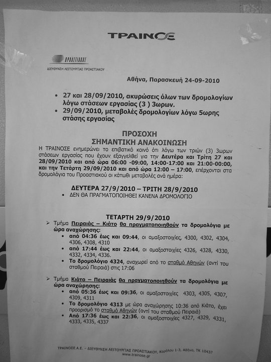 Σίγουρα off topic, αλλά δεν μπορούσα να αντισταθώ...http://paratiriseis.blogspot.com/2010/09/blog-post_07.htmlΑπεργία στο μετρό ...του ΛονδίνουΠολυασχολούμαι με τη Βρετανία τελευταία... Θα ακούσατε πιθανώς ότι στο Μετρό του Λονδίνου σημειώνεται σήμερα μια απεργία που δημιουργεί πρόβλημα στην πόλη. Μάλλον όμως δεν ακούσατε από τα ελληνικά ΜΜΕ κάποιες "λεπτομέρειες" που κάνουν την απεργία αυτή εντελώς διαφορετική από τις αντίστοιχες ημεδαπές:
