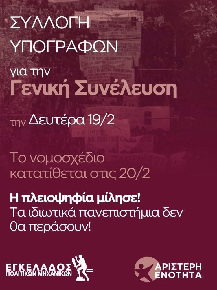 Μαζεύουμε υπογραφές για την διεξαγωγή Γενικής Συνέλευσης την Δευτέρα 19/2!