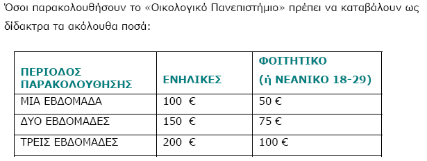 Τα σεμινάρια απευθύνονται σε ενήλικες - επαγγελματίες, εκπαιδευτικούς μέσης και πρωτοβάθμιας εκπαίδευσης, περιβαλλοντολόγους, μηχανικούς, στελέχη των ΟΤΑ, φοιτητές κ.α, και γενικότερα σε όποιον επιθυμεί να είναι ενήμερος για τις τελευταίες εξελίξεις στον τομέα του περιβάλλοντος και της αειφόρου ανάπτυξης.