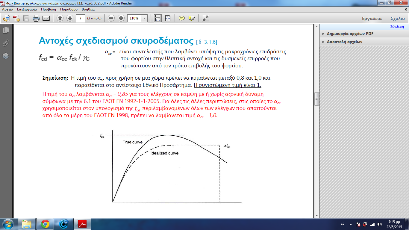 Kouf έγραψε:geocho έγραψε:Γνωριζει καποιος στον ελεγχο για την περισφιγξη αν χρησιμοποιουμε συντελεστη acc=1 η acc=0.85 για το fcd? Θεωρείται δηλαδή οτι υπολογίζεται σε σεισμική δράση?