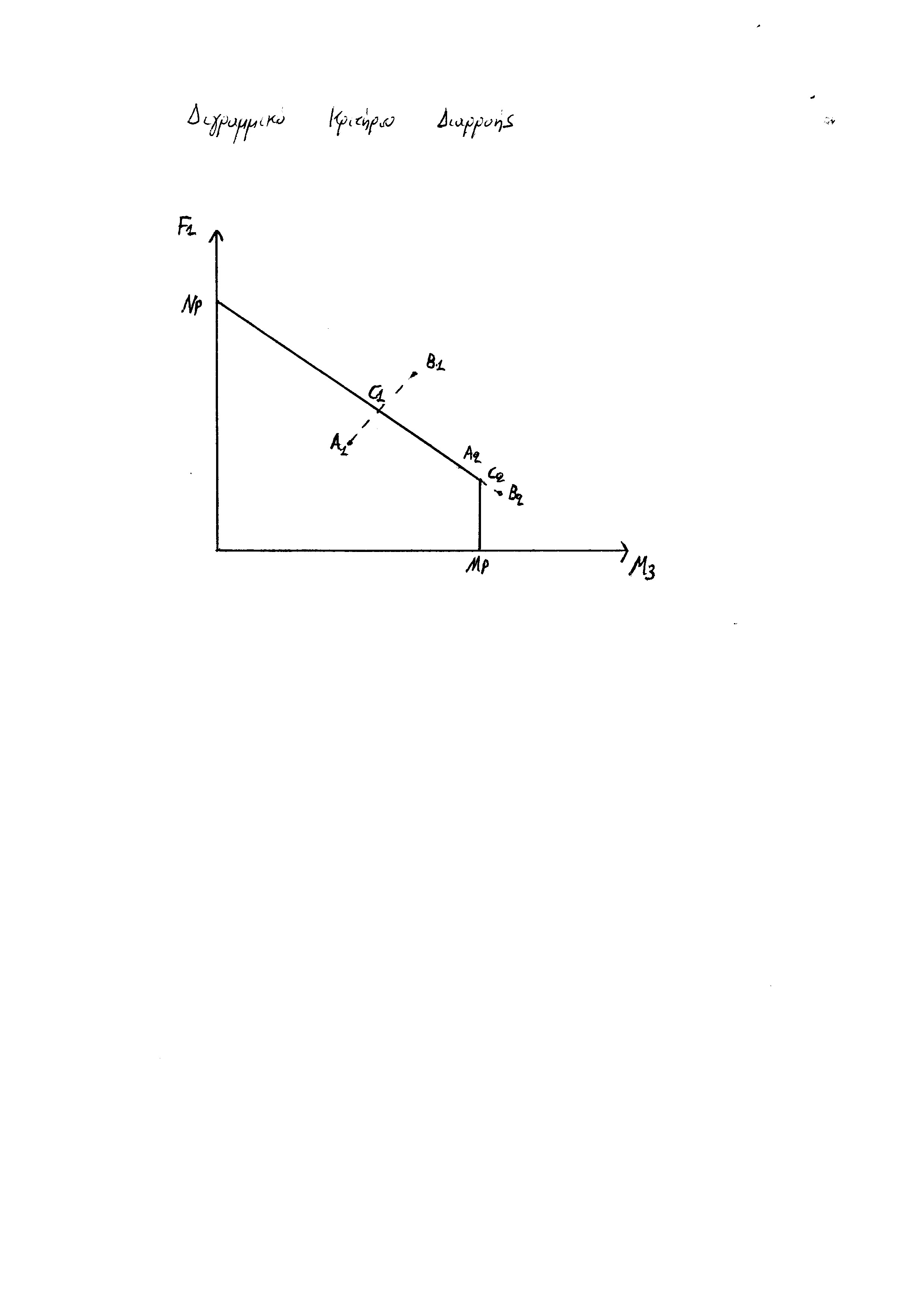 Το διγραμμικό κριτήριο περιγράφει εντατικές καταστάσεις όπως αλληλεπίδραση (Μ,Ν), και αφορά μία διατομή κάθε φορά...! :roll: Ένεκα της κυρτότητας της καμπύλης του κριτηρίου διαρροής (ευσταθή υλικά - πολυαγαπημένη μου Αντοχή των Υλικών :roll: ), ο κρίσιμος φορτιστικός συντελεστής ορίζεται από την τομή της ευθείας ΑΒ (διάνυσμα μεταβολής της εντατικής κατάστασης) με τις ευθείες ΓΔ και ΕΔ (εξισώσεις κριτηρίου διαρροής). Από τα δύο (συγγραμικά) ευθύγραμμα τμήματα που προκύπτουν, αυτό με το ελάχιστο μήκος δίνει τον κρίσιμο φορτιστικό συντελεστή για την εν λόγω διατομή. Από όλους τους κρίσιμους για κάθε διατομή συντελεστές, αυτός με την ελάχιστη τιμή μεταξύ όλων, είναι που καθορίζει την επόμενη πλαστικοποίηση.