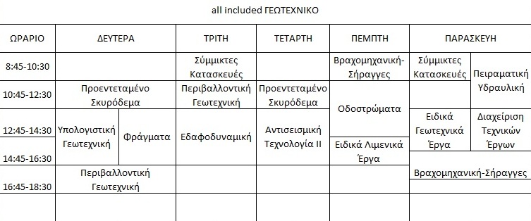 Βρήκα των Μηχανολογών ( http://www.mech.ntua.gr/gr/studies/ugrads/calendar ).