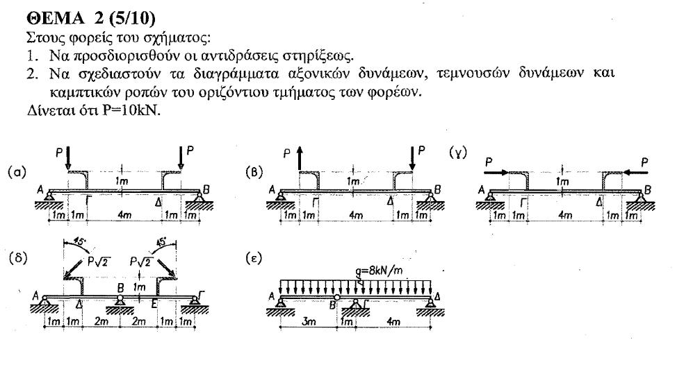 2.Παρατηρησε οτι πχ ο φορεας σου (α) ειναι συμμετρικος και φορτιζεται και συμμετρικα οποτε καθως κανεις τα διαγραμματα M,Q,N εχε στο μυαλο σου τη σελιδα 70 του γκαρουτσου για το πως θα σου βγουνε τα M,Q,N