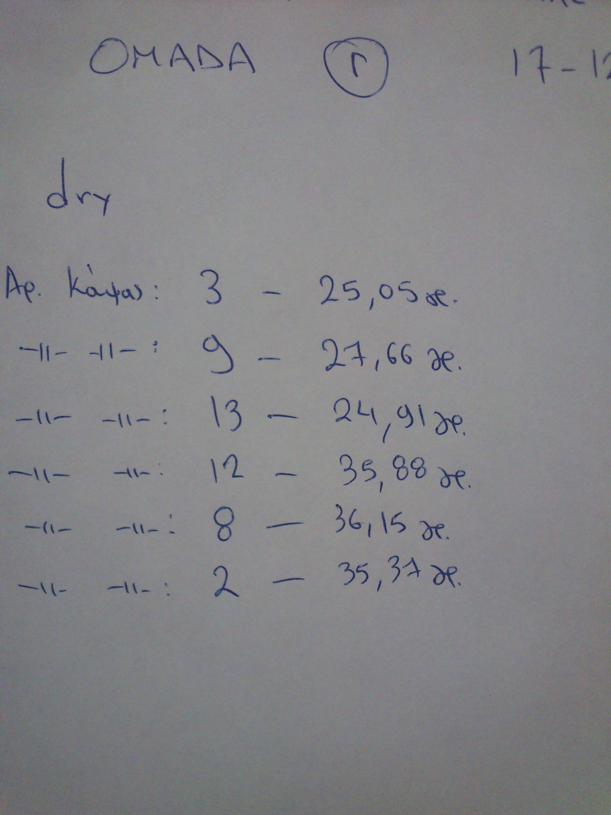 ξηρό μεικτό βάρος για την ομάδα Α' για τις 26 Νοέμβρη: