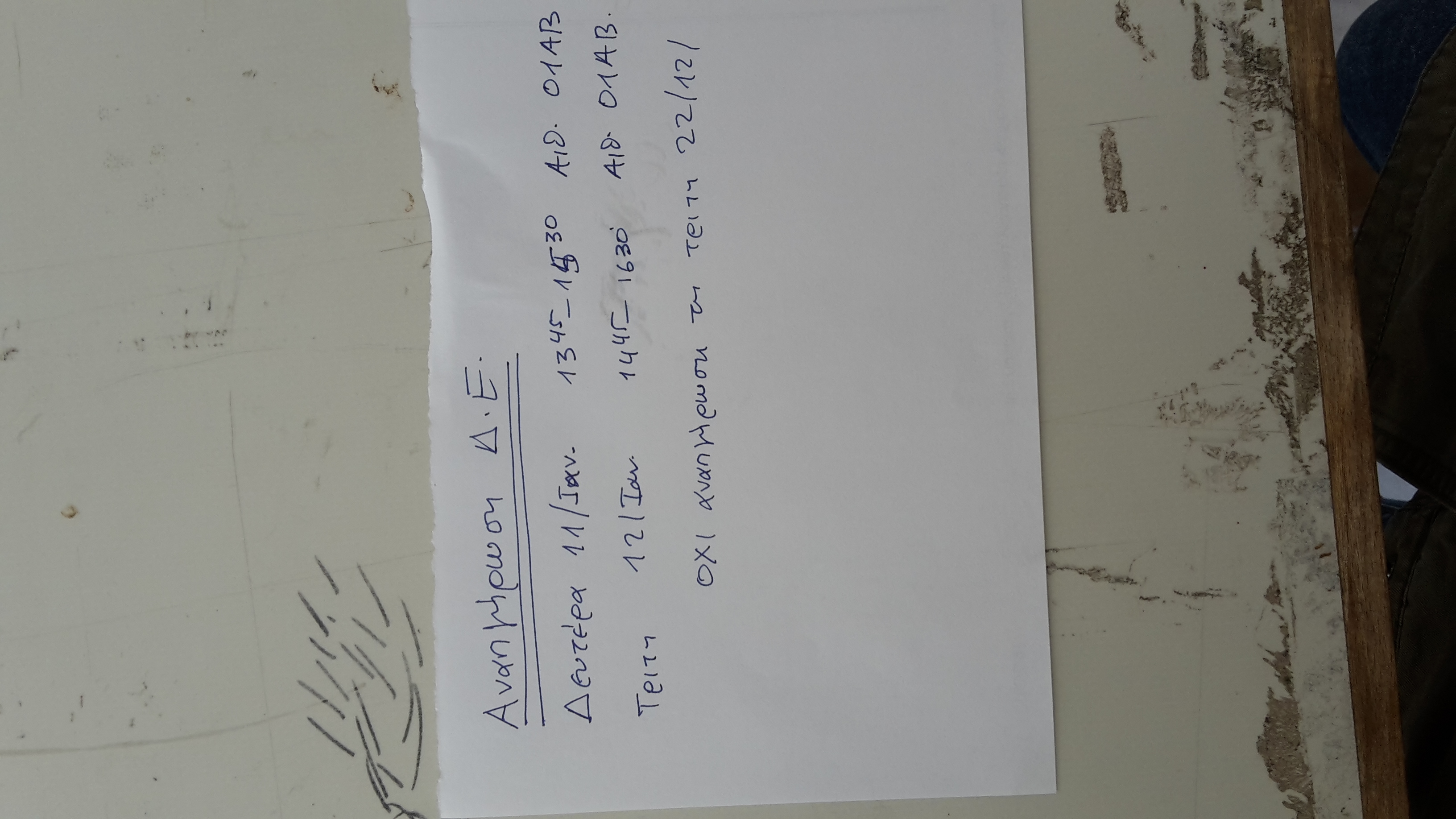 Η αναπληρωση τελικά θα γίνει την Τρίτη 22/12 στην αίθουσα 01ΑΒ μεταξύ 15.00- 17.00