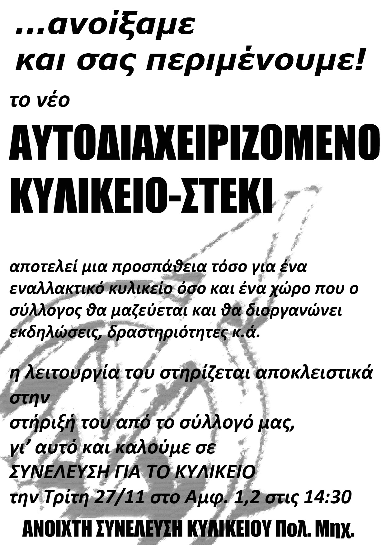-Ορίσαμε επόμενη Συνεύλευση για το Αυτοδιαχειριζόμενο Στέκι/Κυλικείο για την οποία μπορείτε να μάθετε κοιτώντας λίγο πιο πάνω (Τρίτη 2μιση)