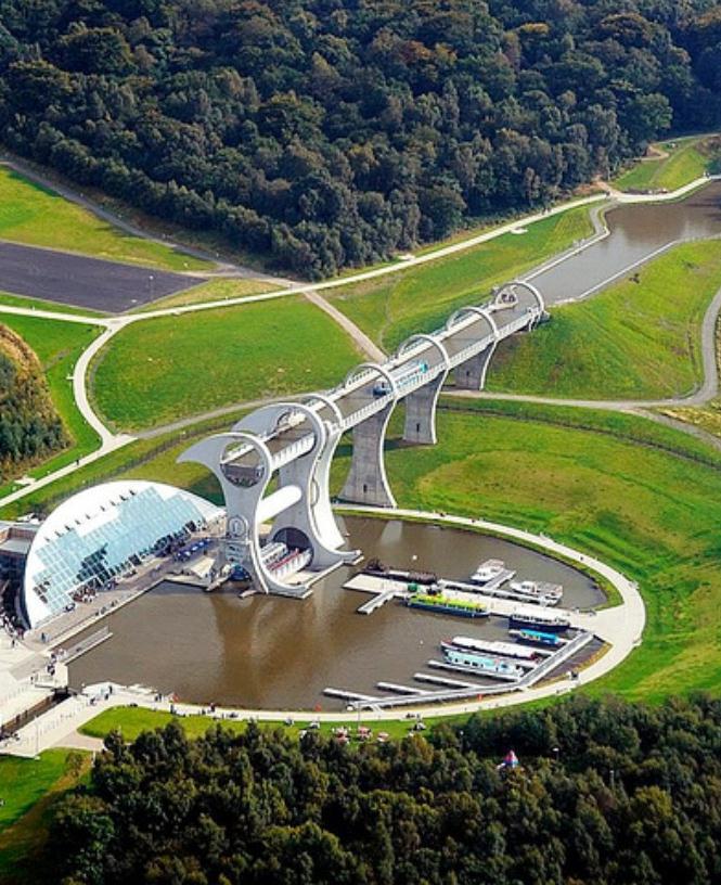 Η Ρόδα - Falkirk WheelΤο κανάλι Forth and Clyde, το οποίο συνδέει την Glasgow με την δυτική ακτή, κατασκευάστηκε το 1777 μεταξύ του λιμανιού Grangemouth και Falkirk. Μεταξύ Falkirk και Edinburgh εδόθη στη χρήση το κανάλι Union το 1822. Δεδομένου του ανωμάλου του εδάφους η πλωτή συγκοινωνία μεταξύ Glasgow και Edinburgh μπορούσε να γίνει μόνο με την βοήθειαse ενός συστήματος 11 σταθμών.