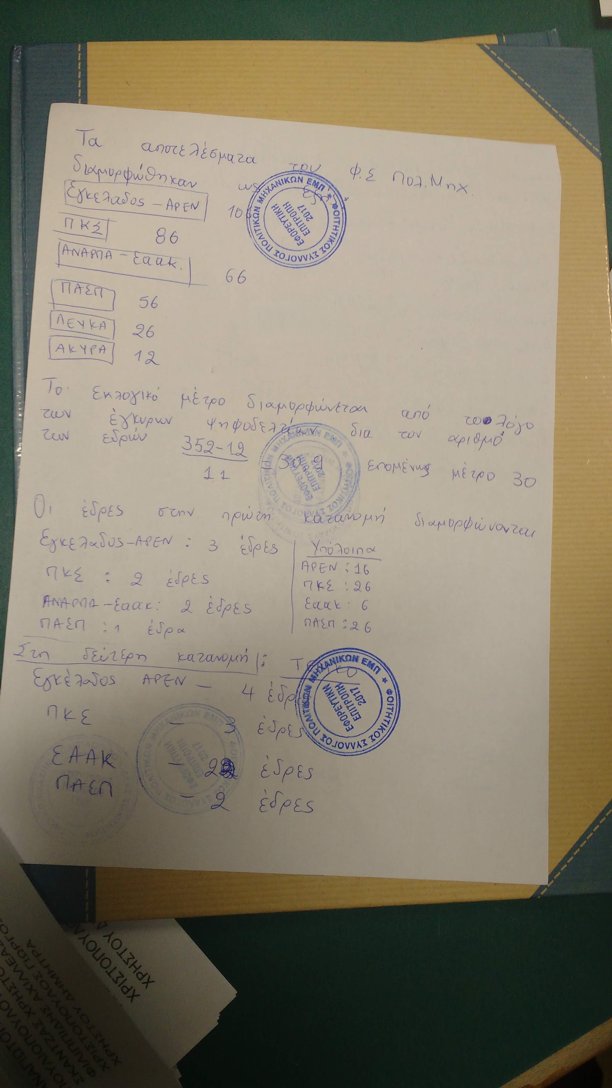 Επισυνάπτω και φώτο με τα πρακτικά της Κεντρικής ΕΦορευτικής Επιτροπής (ΚΕΦΕ), με τις σφραγίδες και με τα όλα τους. Επειδή έχουν φτάσει διάφορα στα αυτιά μου, να τονίσω ότι η διαδικασία είναι δεδομένο ότι είναι καθόλα νόμιμη, αφού διενεργήθηκε υπό την ΚΕΦΕ, η οποία είχε ήδη συστηθεί από τις 22/05 και στην οποία κάθε σχήμα ή παράταξη συμμετέχει ισότιμα (στην ΚΕΦΕ η ΔΑΠ δεν έχει αυτοδυναμία). Συγκεριμένα, οι εκλογές διενεργήθγκαν με απόφαση της ΚΕΦΕ, ύστερα από πλειοψηφία 4/5 (μόνο η ΔΑΠ διαφώνησε).