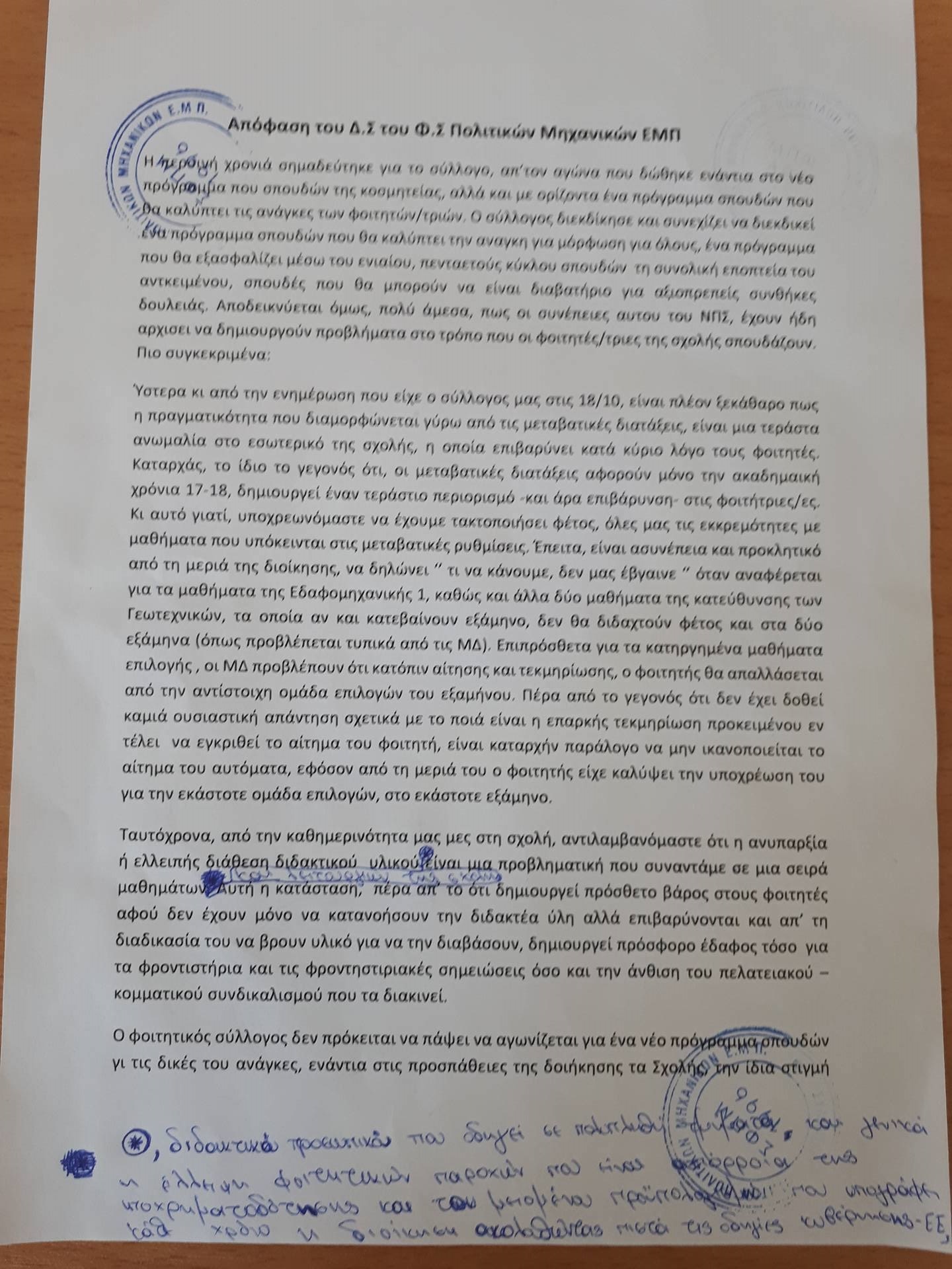 Re: Αποφάσεις ΔΣ του Φοιτητικού Συλλόγου