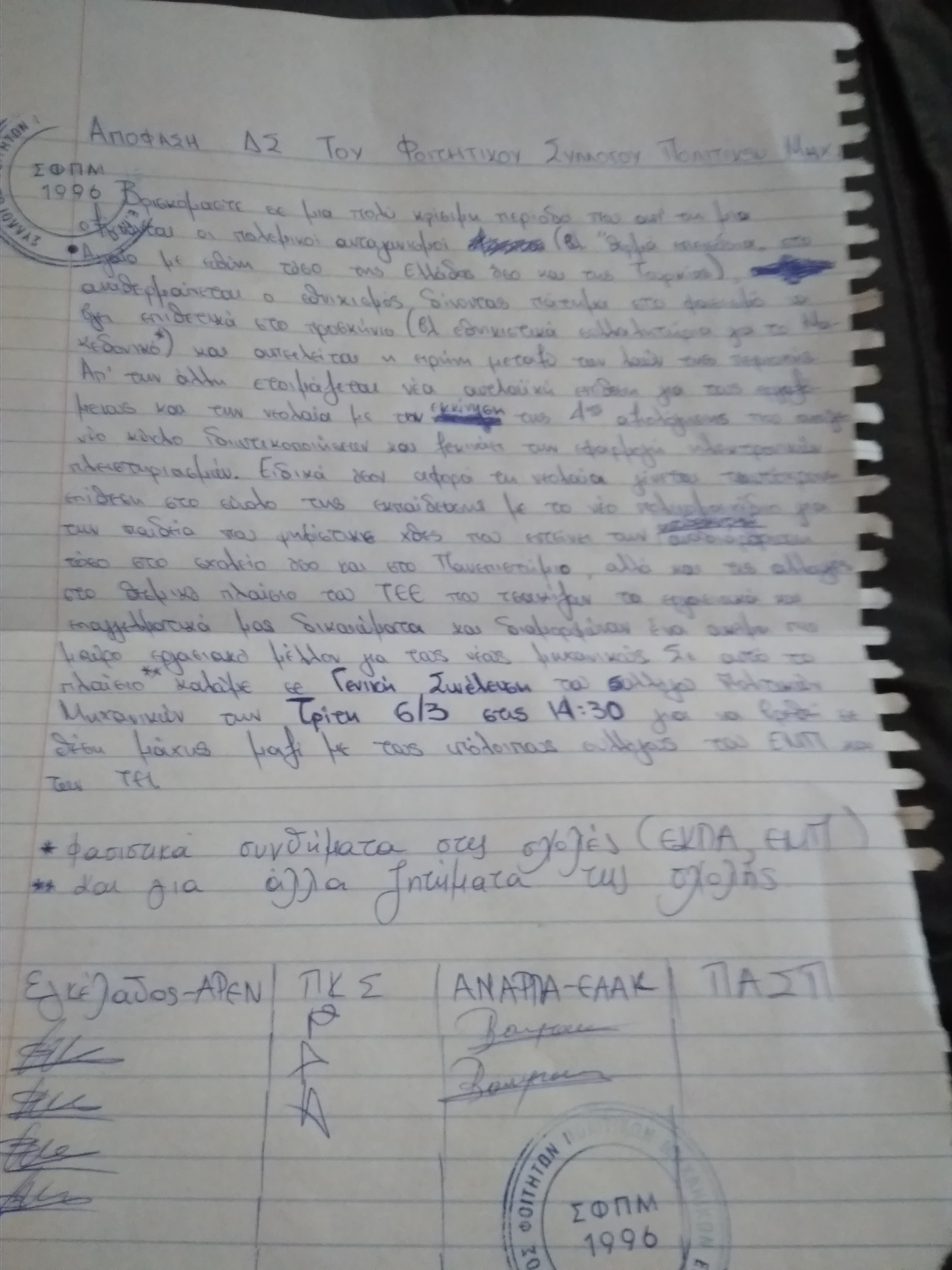 Εδώ ανακοινώνονται οι διεργασίες των θεσμικών οργάνων της σχολής και σχολιάζεται η δραστηριότητα και το αποτέλεσμά τους.