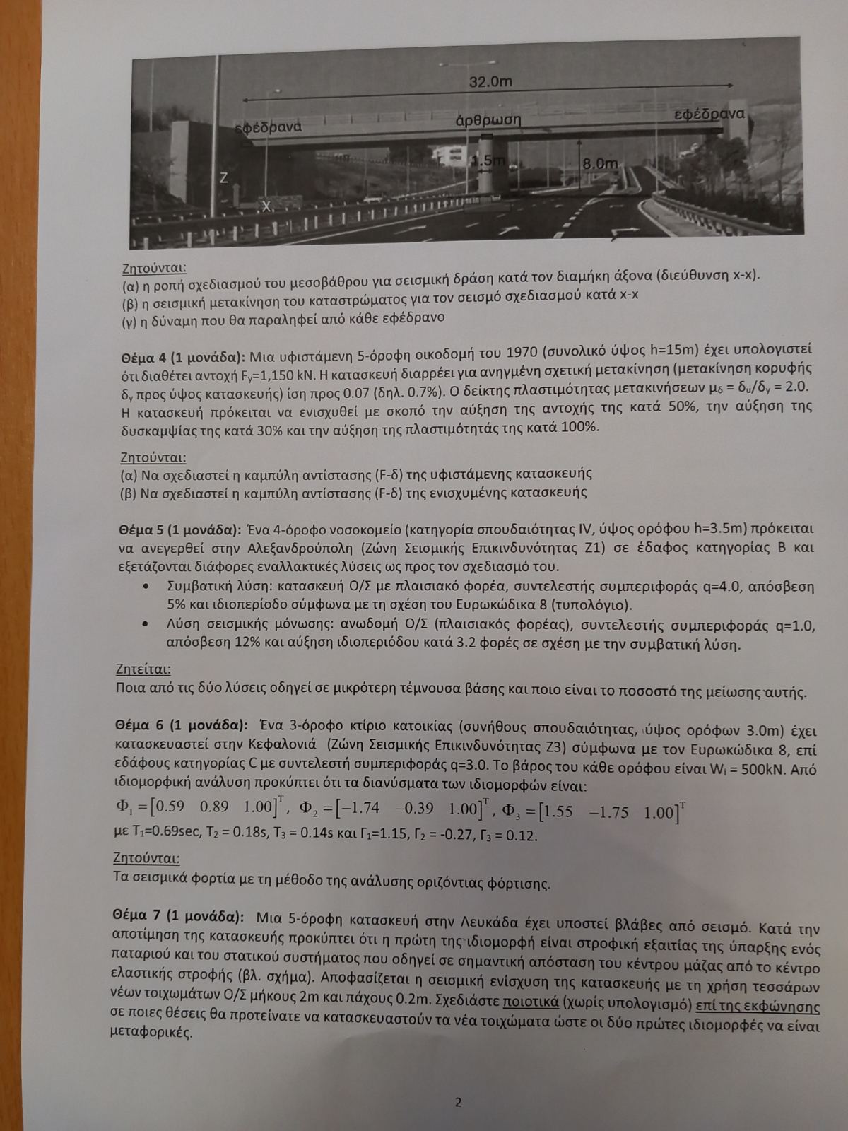 -1 θέμα με ένα κτίριο με 12 υποστυλώματα όπου γινόταν ενίσχυση και ζητούσε πριν και μετά την ενίσχυση δυσκαμψίες, ιδιοπεριόδους, πλαστιμότητες , και μετά για το νέο κτίριο τι θα συνέβαινε αν ερχόταν ένας δεδομένος σεισμός σχεδιασμού