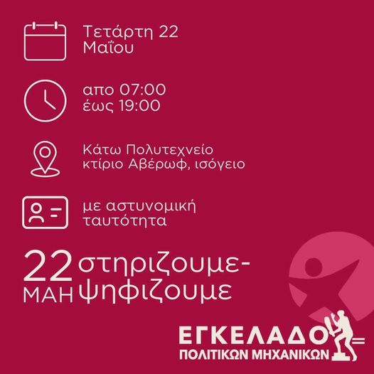 Οι φοιτητικές εκλογές θα διεξαχθούν στο κάτω πολυτεχνείο και συγκεκριμένα στο κτήριο Αβέρωφ και στην αίθουσα 6.