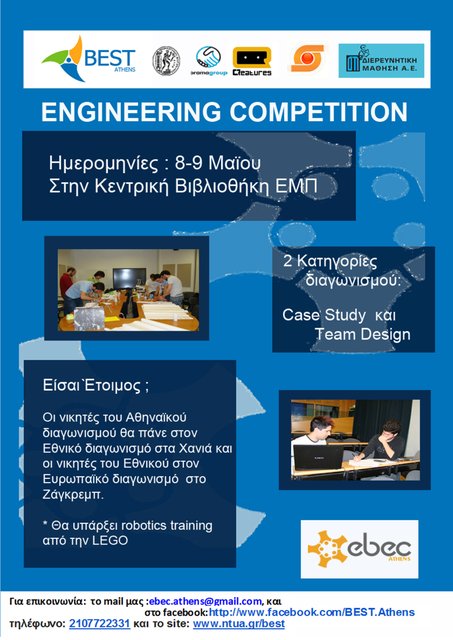 Για περισσότερες πληροφορίες αλλά και για τη περιγραφή του διαγωνισμού επικοινώνησε μαζί μας στο ebec.athens@gmail.com ή athens@best.eu.org